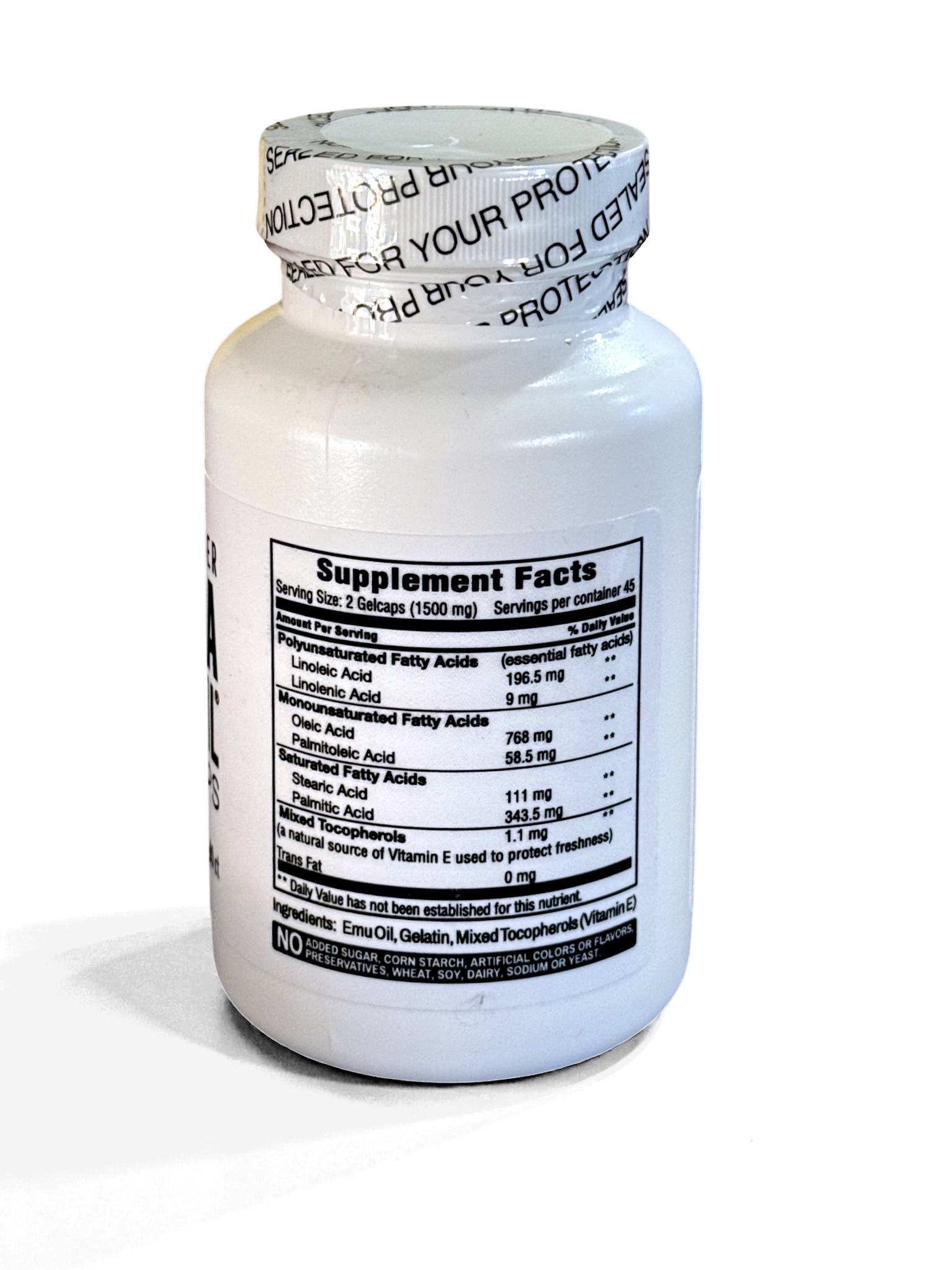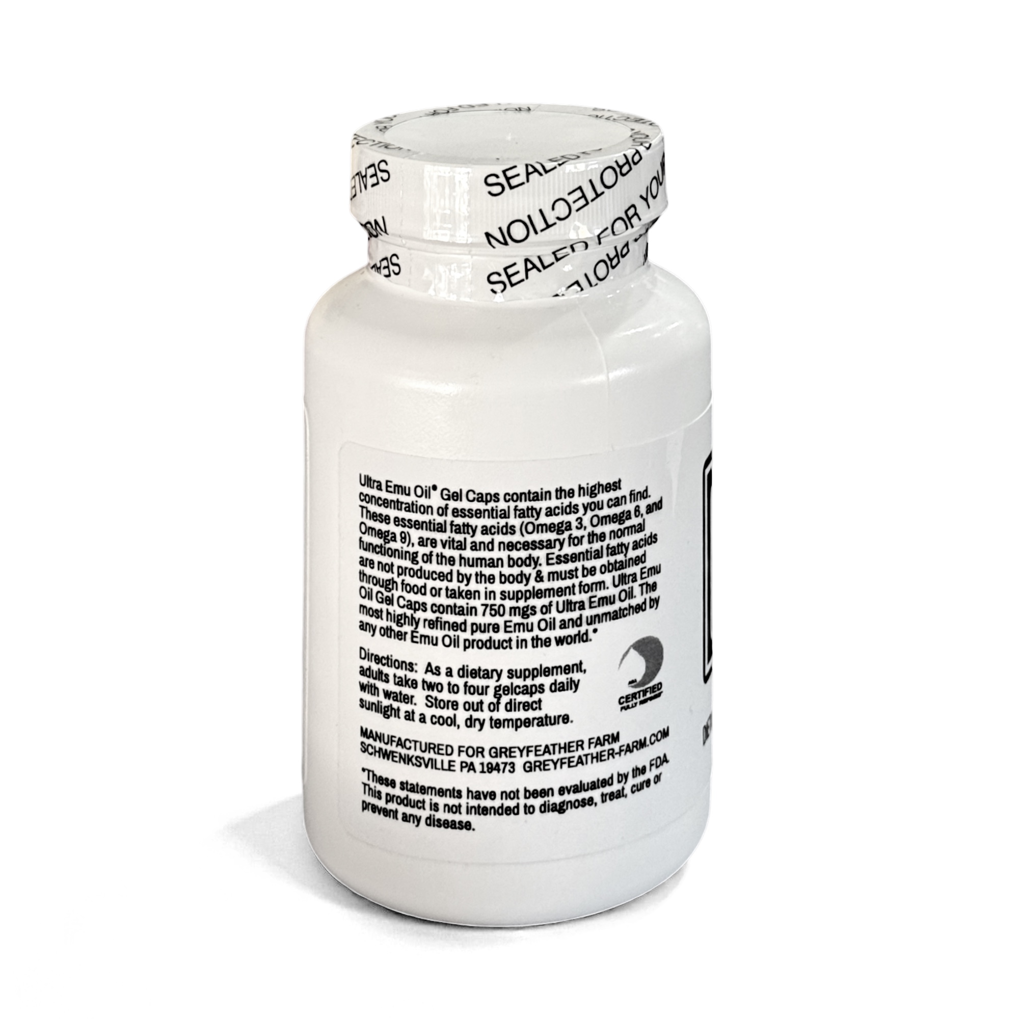 *Disclaimer: Greyfeather Ultra Emu Oil Gel Caps is not a drug, but a dietary food supplement and are not evaluated by the FDA. These products are not intended to diagnose, treat, cure, or prevent any disease.